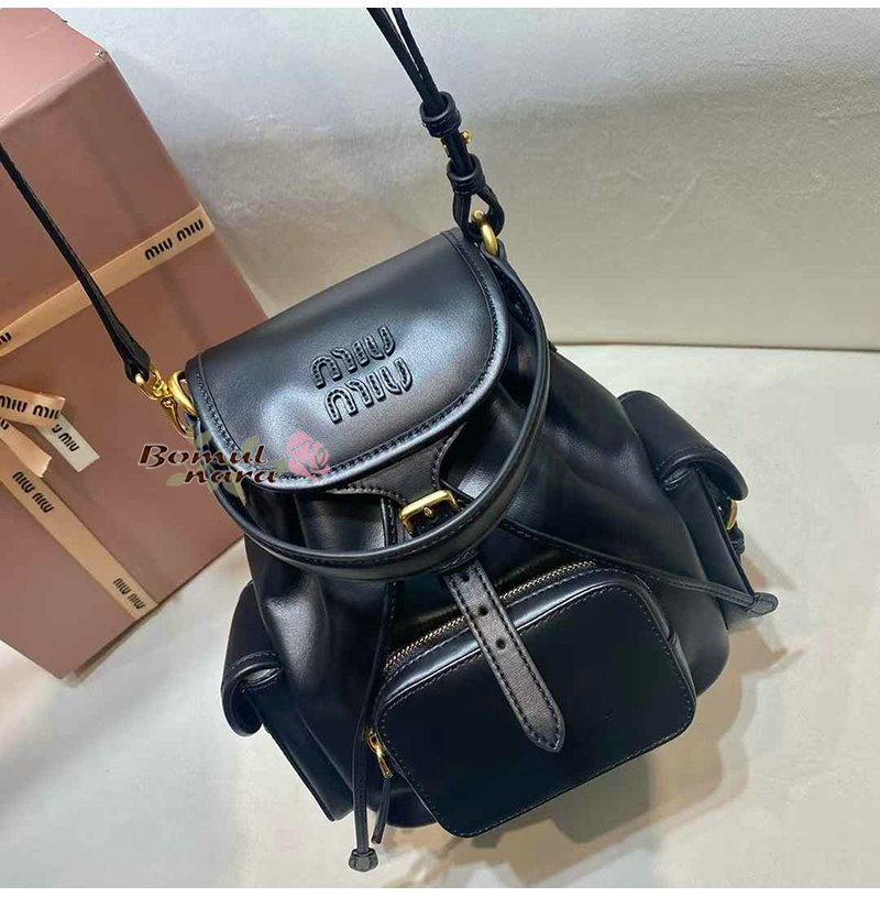 MIUMIU-5BZ043 미우미우 블랙 송아지 가죽 백팩