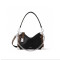 색상의 가죽과 실버 색상 금속 소재의 리벳 프레임 및 S락 디테일로