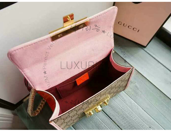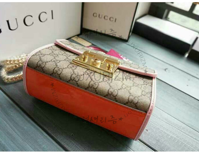 [스페셜오더]GUCCI-409487 8785 구찌 [Padlock] 스몰 핑크페이던트가죽 GG 수프림 숄더백